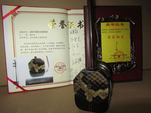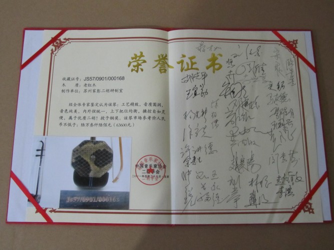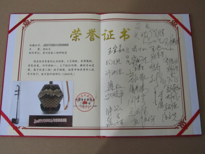 二胡制作大師丁家彭先生1949年出生樂器世家,17歲隨其祖父學(xué)琴藝,并深得精髓,其聰穎好學(xué),悉心鉆研與 探求二胡制作,博得同行的欽佩贊許,更得了許多知名演奏家的稱贊,充分認(rèn)識到二胡制作每個(gè)環(huán)節(jié),都對二胡制作都有影響力,因此對二胡的選材,選料,蟒皮都十分嚴(yán)格,二胡整體穩(wěn)定性良好,環(huán)境干擾影響極小。